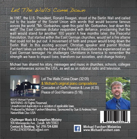 In this exciting account, East German speaker and pianist, Michael Furchert, takes us into the heart of the Peaceful Revolution that he experienced as a teenager. He challenges Christians in America to remember the strength we have to impact lives, transform societies and change history.